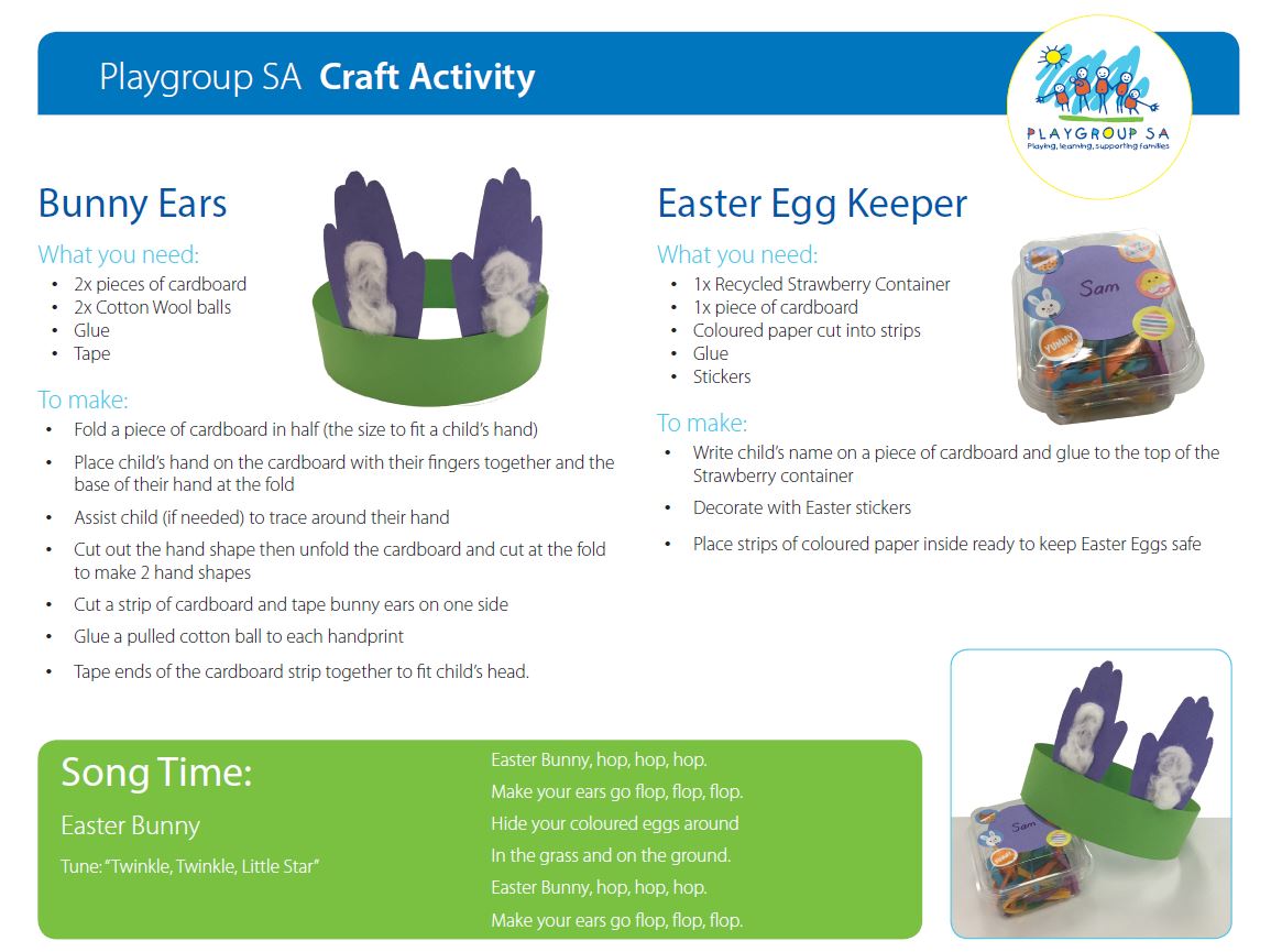 Download our Easter craft activity ideas by clicking on the image below and learn how to make some cute bunny ears and an Easter egg keeper.